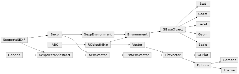 rpy2.robjects.lib.ggplot2(for example, is this an new “geometry”, statistics, coordinates, theme ?). For example the ggplot2 function stat_quantile is a statistics and the best matching class isrpy2.robjects.lib.ggplot2.Stat. The more general ancestor classrpy2.robjects.lib.ggplot2.GBaseObjectcould also be used.Implement a child class that assign to the class attribute